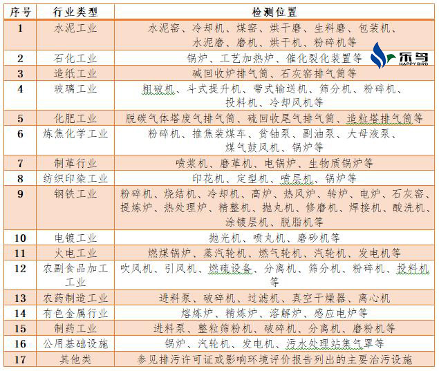 重点行业主要生产设施: