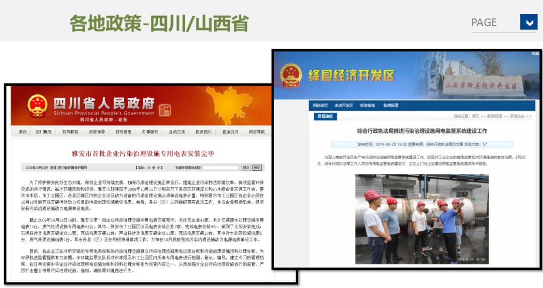 2018年6月24日公布的《中共中央国务院关于全面加强生态环境保护坚决打好污染防治攻坚战的意见》提出:坚决打赢蓝天保卫战,着力打好碧水保卫战,扎实推进净土保卫战。各省市相继出台有关污染治理设施用电监管平台相关政策,要求