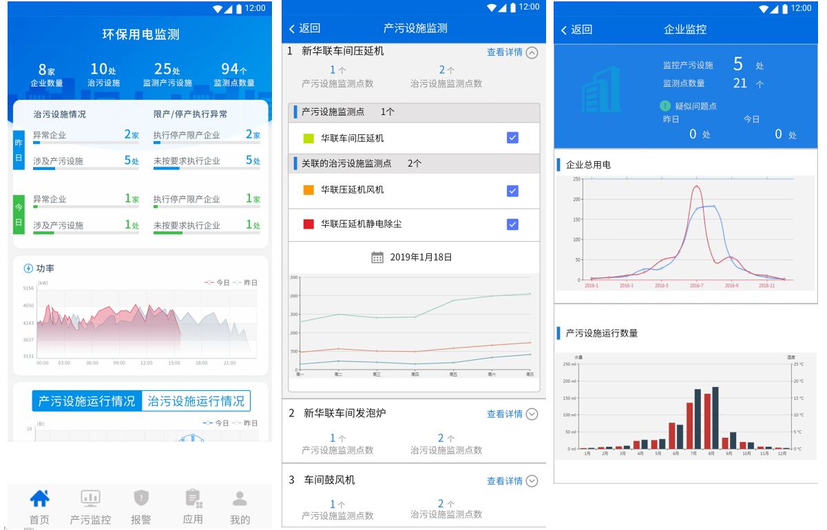 工况企业人员、设备运维人员、环保人员都可以通过PC端或者移动端查看了解每个车间用电量的在线监测情况,从而实现对产污、治污设施运行情况的监控。