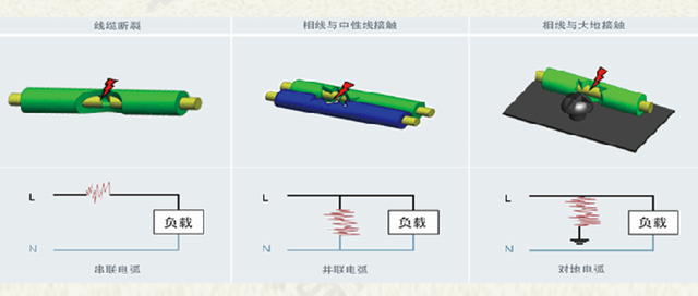 常见的电弧故障有三种: