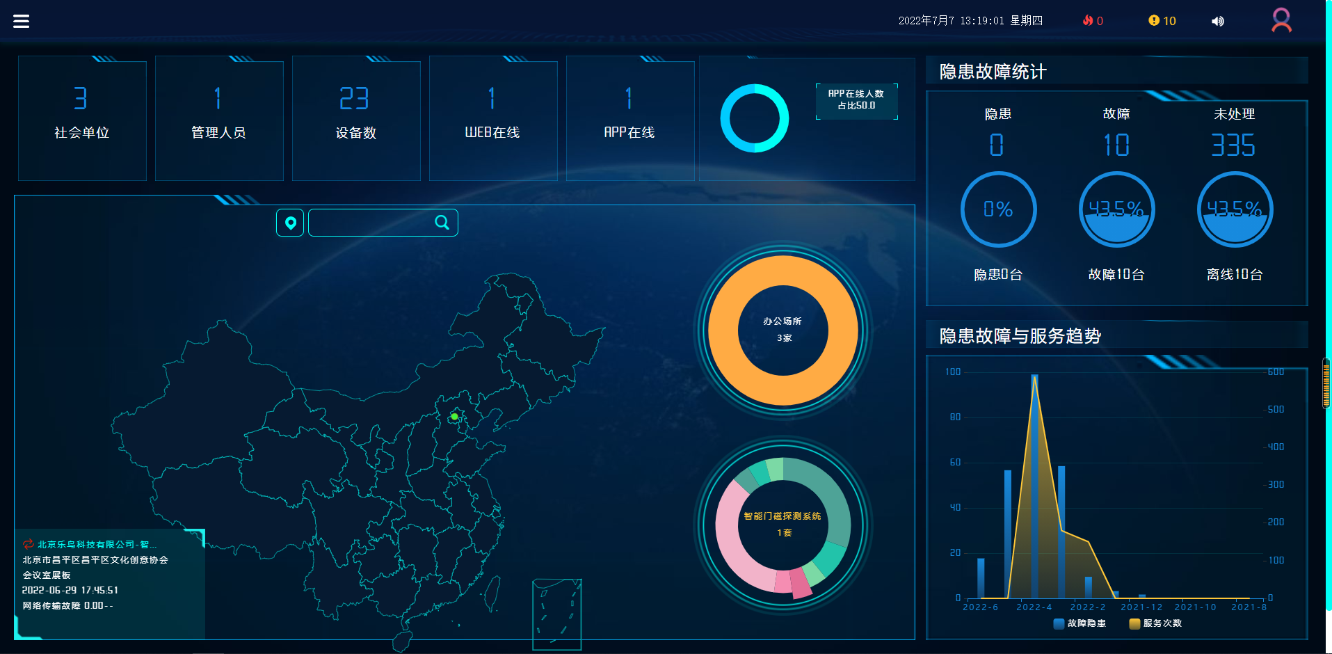 综上所述,通过智慧消防云平台统计和分析的数据,更直观了解消防安全整体情况,及时发现存在的问题和隐患。同时,即便管理人员不在现场,也可以通过云平台发送的信息了解现场情况,甚至可以通过报警设备同步查看报警现场的视频,为及时处理消防险情提供可靠的策略依据。