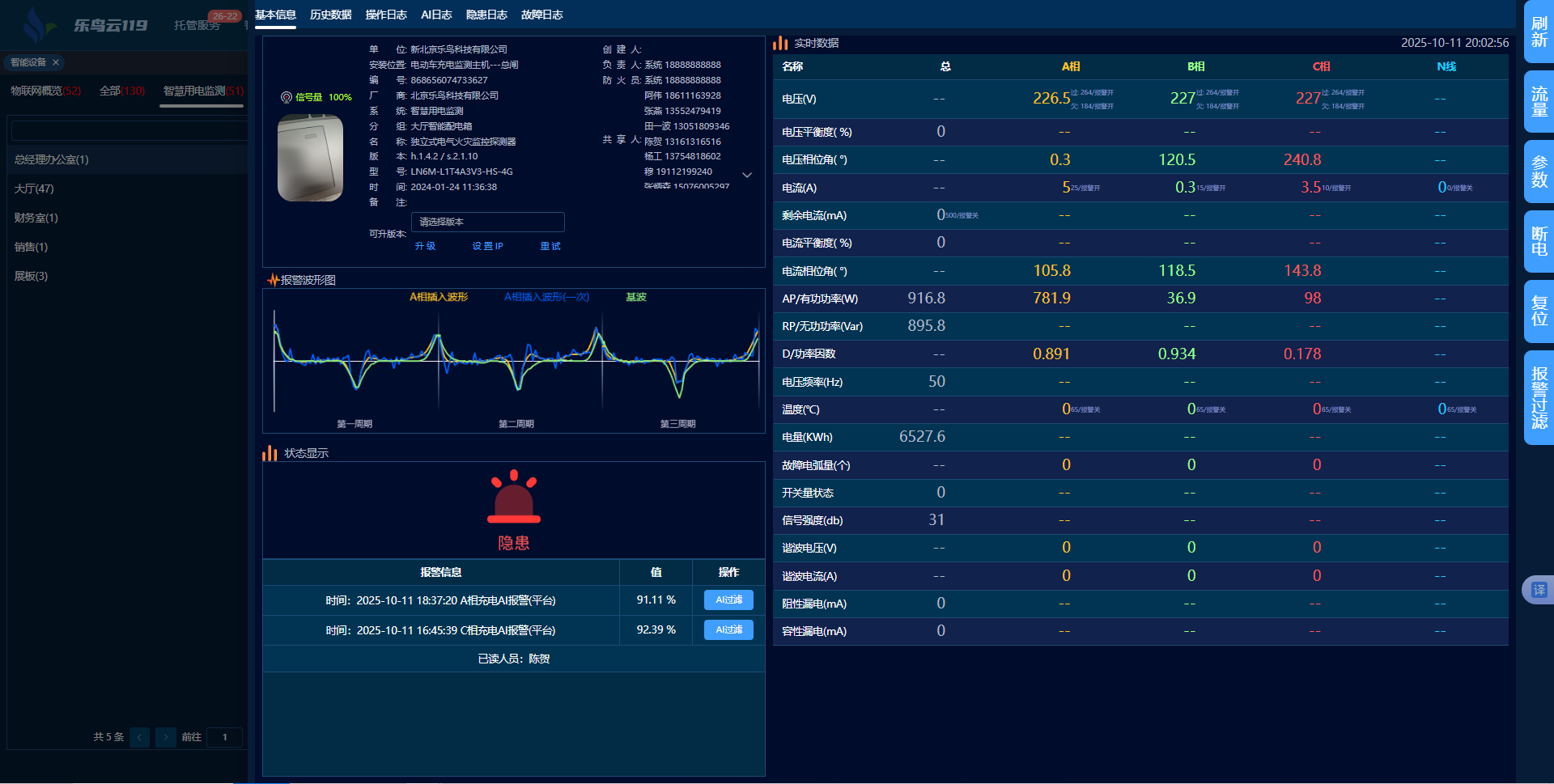 自行车充电安全监控系统,构建了“预防-监测-响应-灭火”安全防护体系。实时抓取充电线路的电压、电流等关键数据,精准感知线路状态。同时,同步采集电源适配器参数与电池健康数据,准确评估电池老化风险,提前发现潜在的安全隐患。并且,支持对历史数据进行回溯查看。