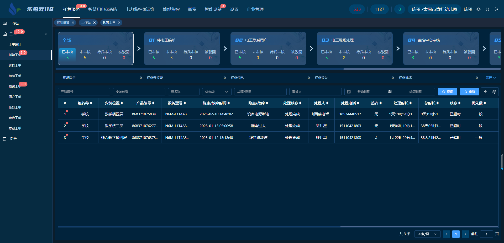 ·线上线下协同处置:运营团队在接到告警后,第一时间联系园方确认情况,协助远程处理。如需现场支持,可迅速协调维修力量定位问题,大幅提升排障效率。