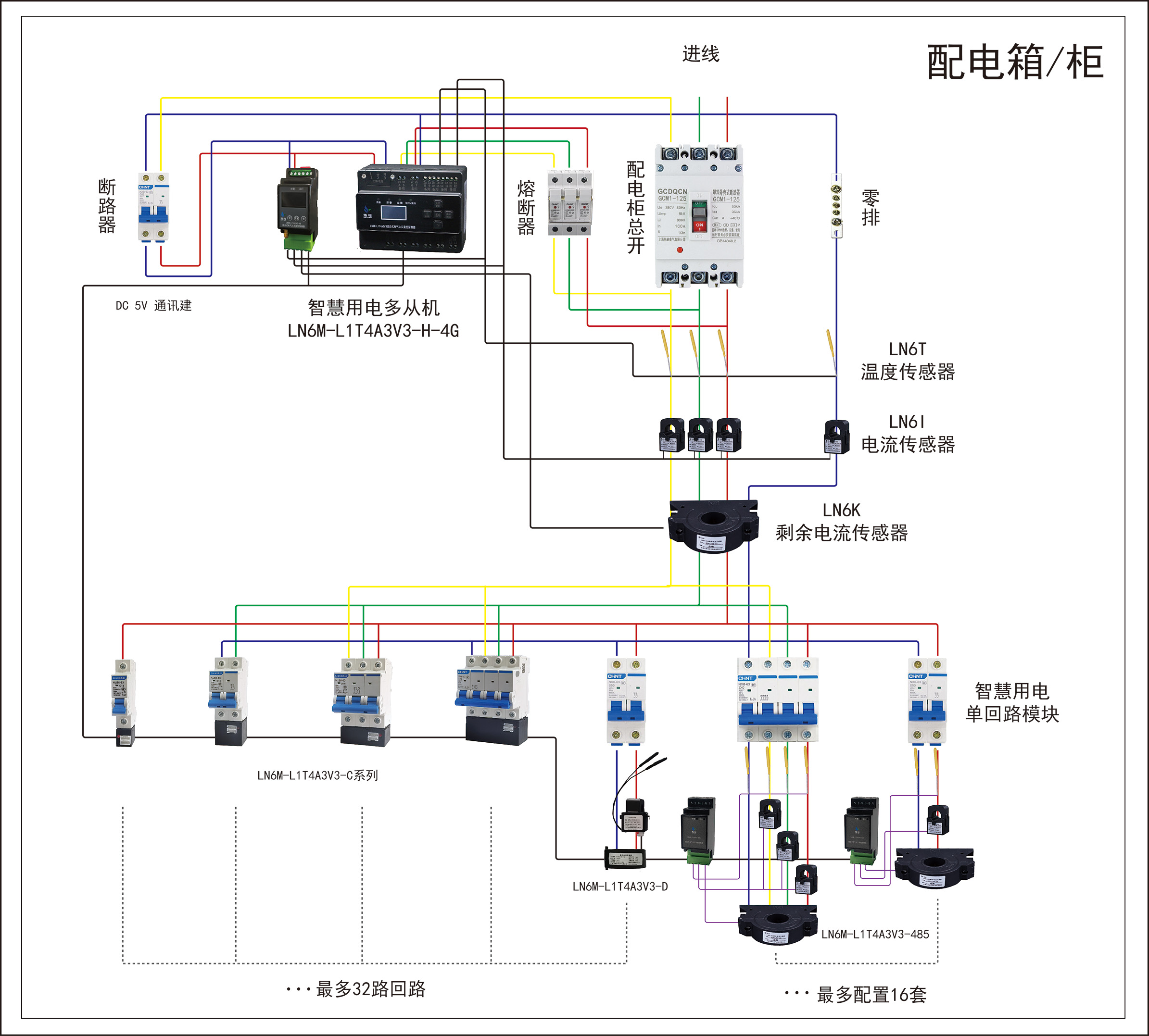 LN6M-L1T4A3V3-485 智慧用电单回路设备作为系统从机,需与配套的 LN6M-L1T4A3V3-HS 主机协同使用。单台主机最多支持连接16台从机,构建高效稳定的用电监测网络。该设备能够实时监测电压、电流、电能、功率等关键电气参数,并对用电质量进行综合评估,精细化用电管理。