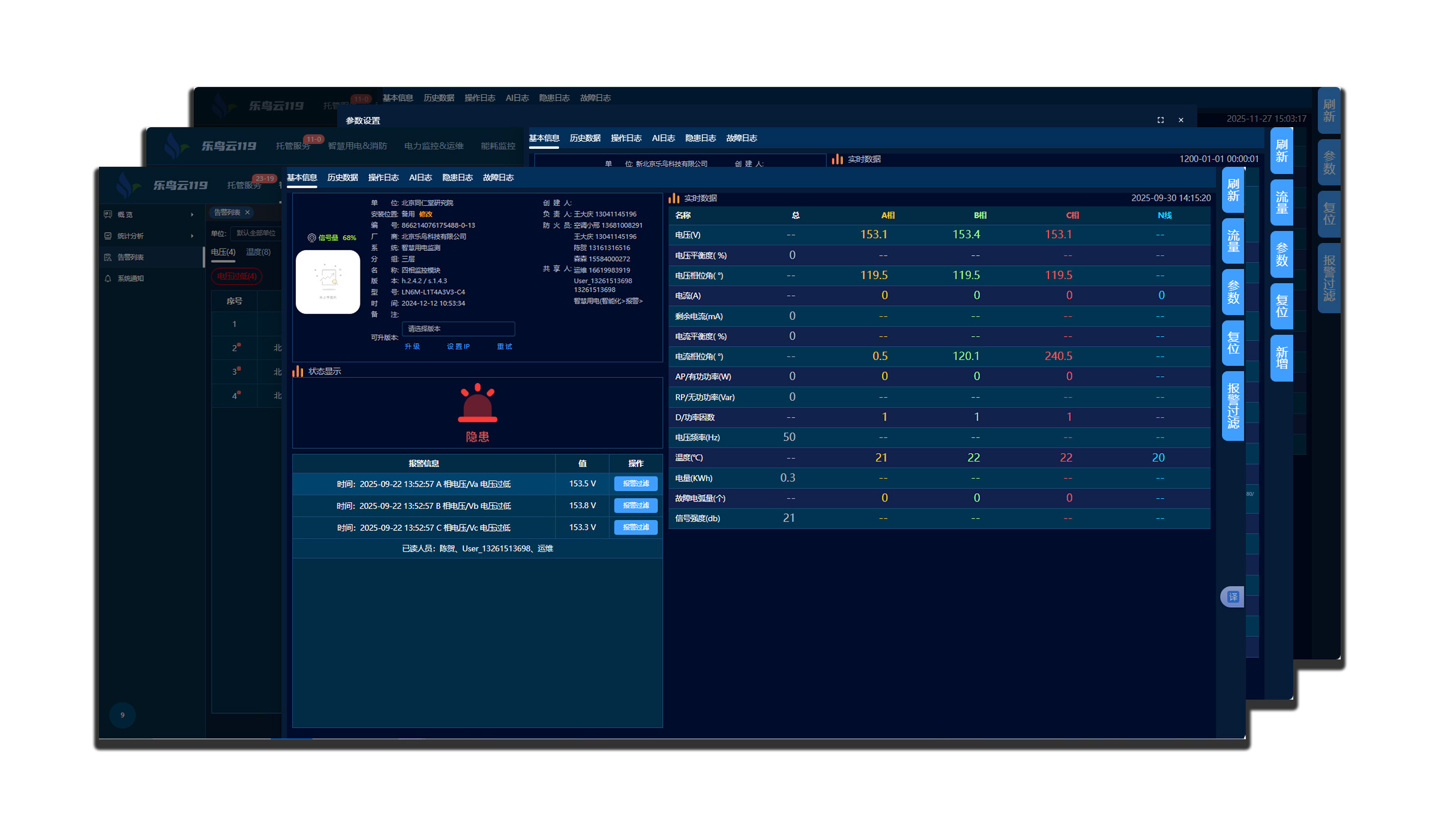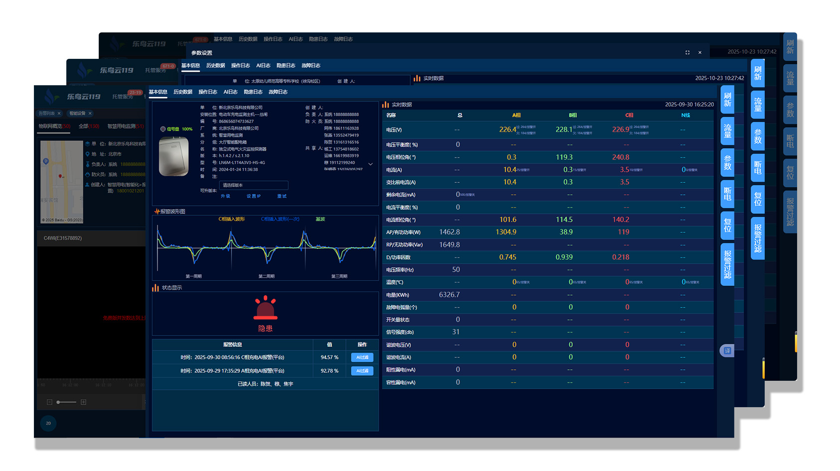 实时展示漏电(剩余电流)、温度、电流、电压、电量、功率(有功/无功)等20多项参数。