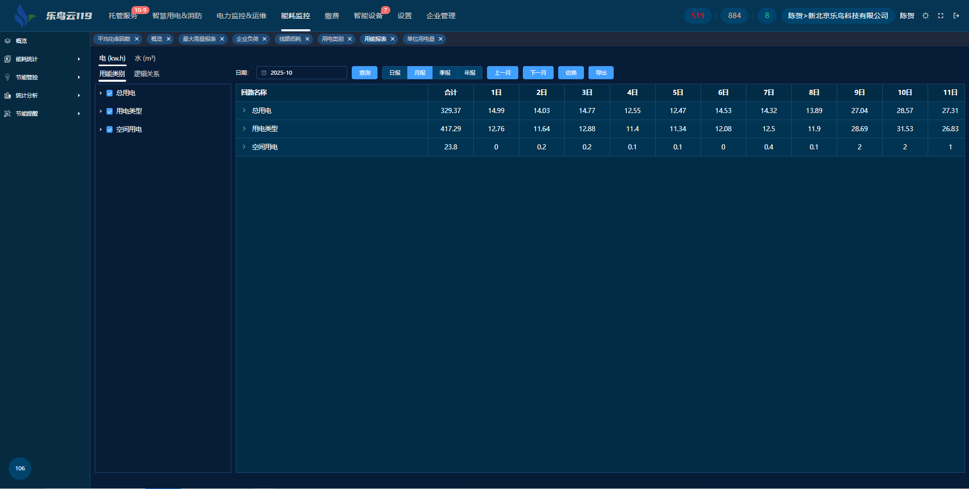 持按用能类别(如照明、动力、空调)或自定义逻辑关系细分查询用电数据。
