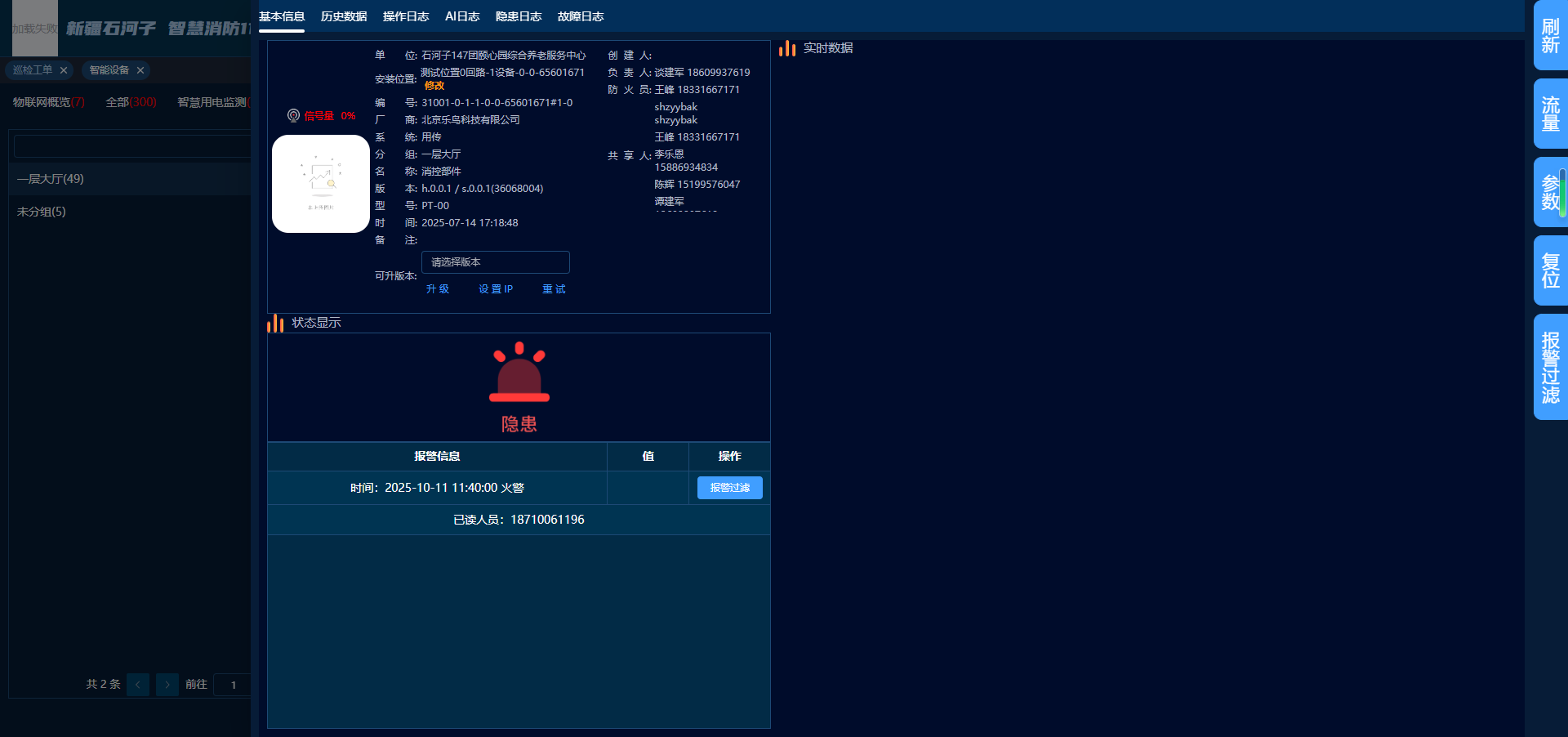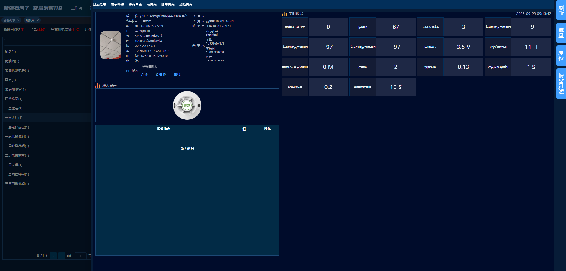 实时查看消防报警主机的设备状态、报警记录、历史数据等各类信息