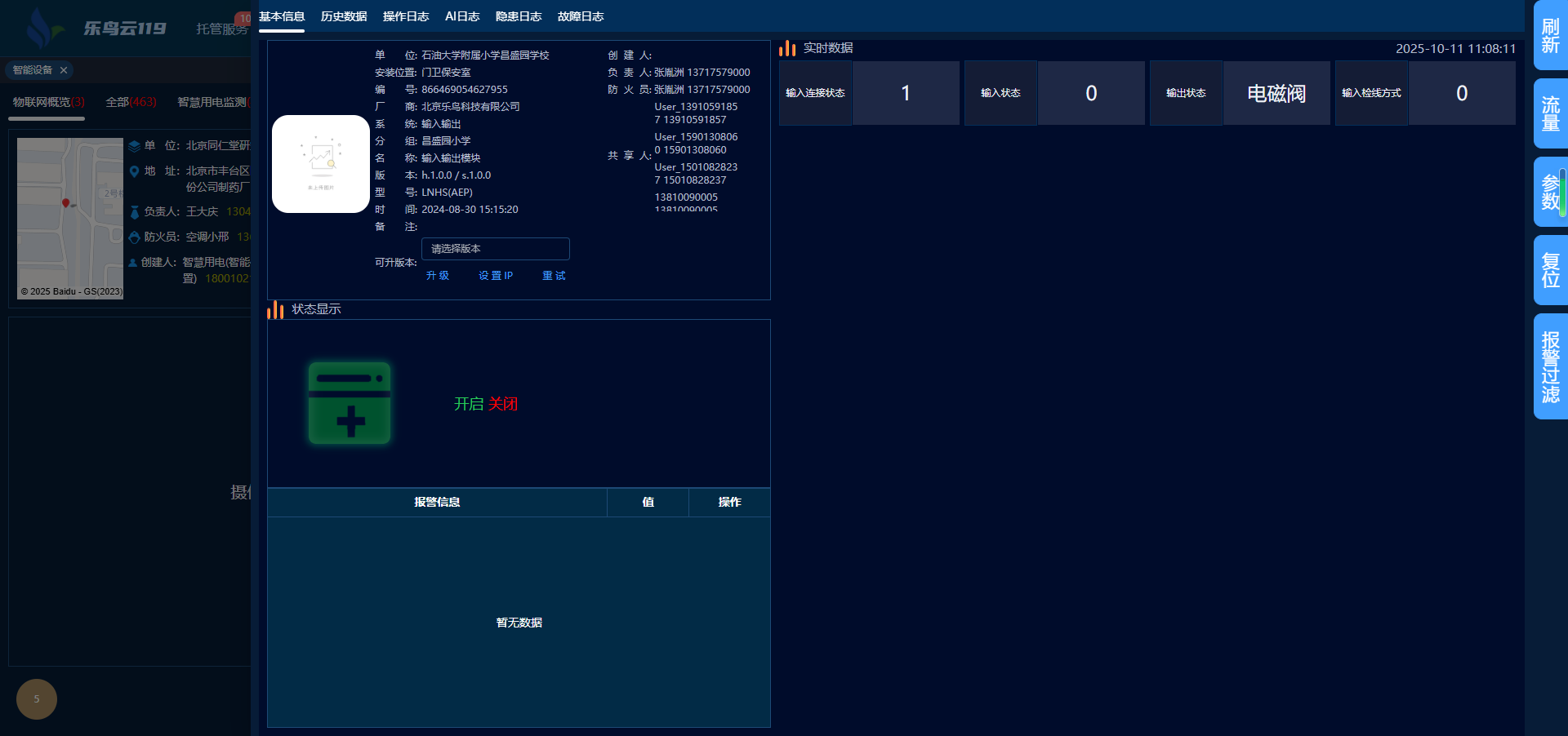 火灾自动报警系统,兼容市面上全部品牌的火灾报警主机,无需任何代码开发,依托现有协议,实现云端管理,即便面临百万级设备同时接入的复杂场景,也能稳定运行应对。系统支持管理人员远程实时查阅消防报警主机的各类数据,可执行设备刷新、复位以及查岗等多样化管理操作。一旦主机检测到火警或故障信息,系统即刻向相关管理人员发出通知,实现对传统消防设备的全方位、可视化智能管控。此外,系统还能与乐鸟火灾报警产品绑定,实时火灾预警的智能联动,为场所构筑起坚实可靠的安全屏障。
