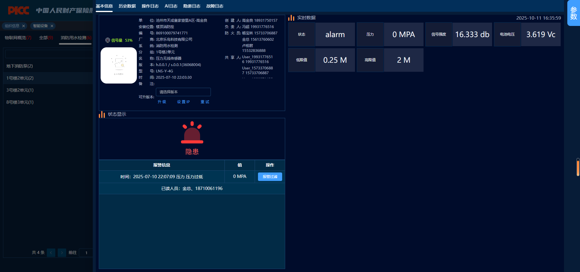 展示正常、故障、报警状态,实时展示水压、水位等关键参数。