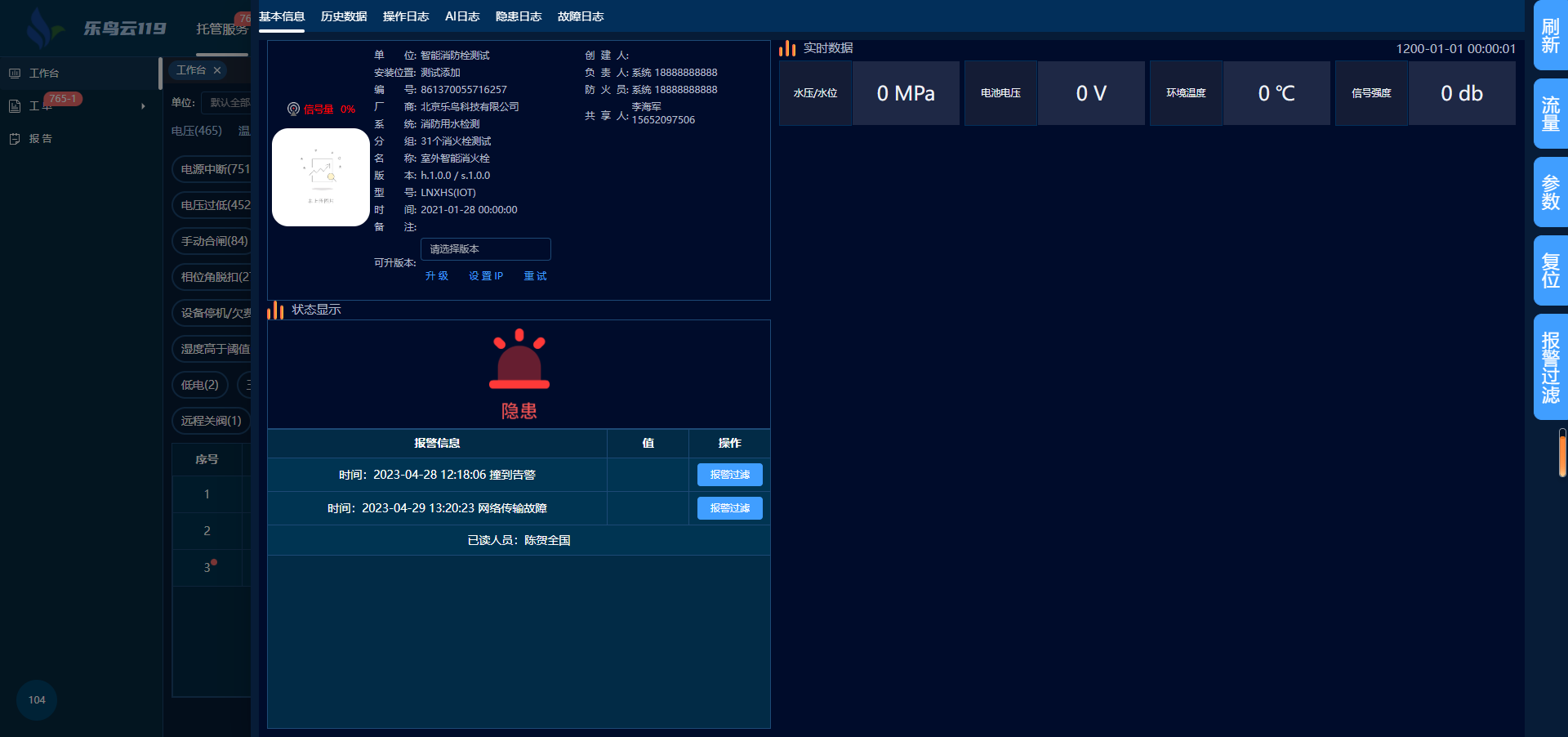 实时动态呈现消火栓设备状态,同步实时展示水压、水位等关键参数,确保设备关键时刻可用。