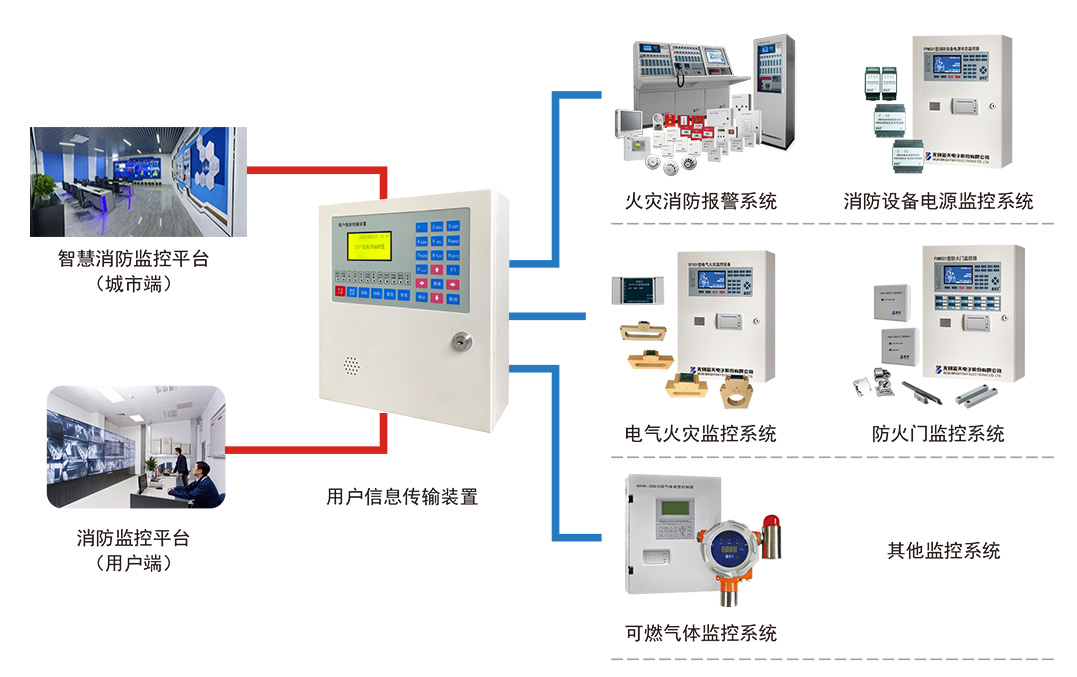 利用公用通信网络/专用网络,传输火灾报警信息、建筑消防设施状态信息,实现信息的快速、远程传输。